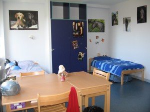 - Des chambres spacieuses de 3 à 5 lits, avec salle de bain et bureaux.